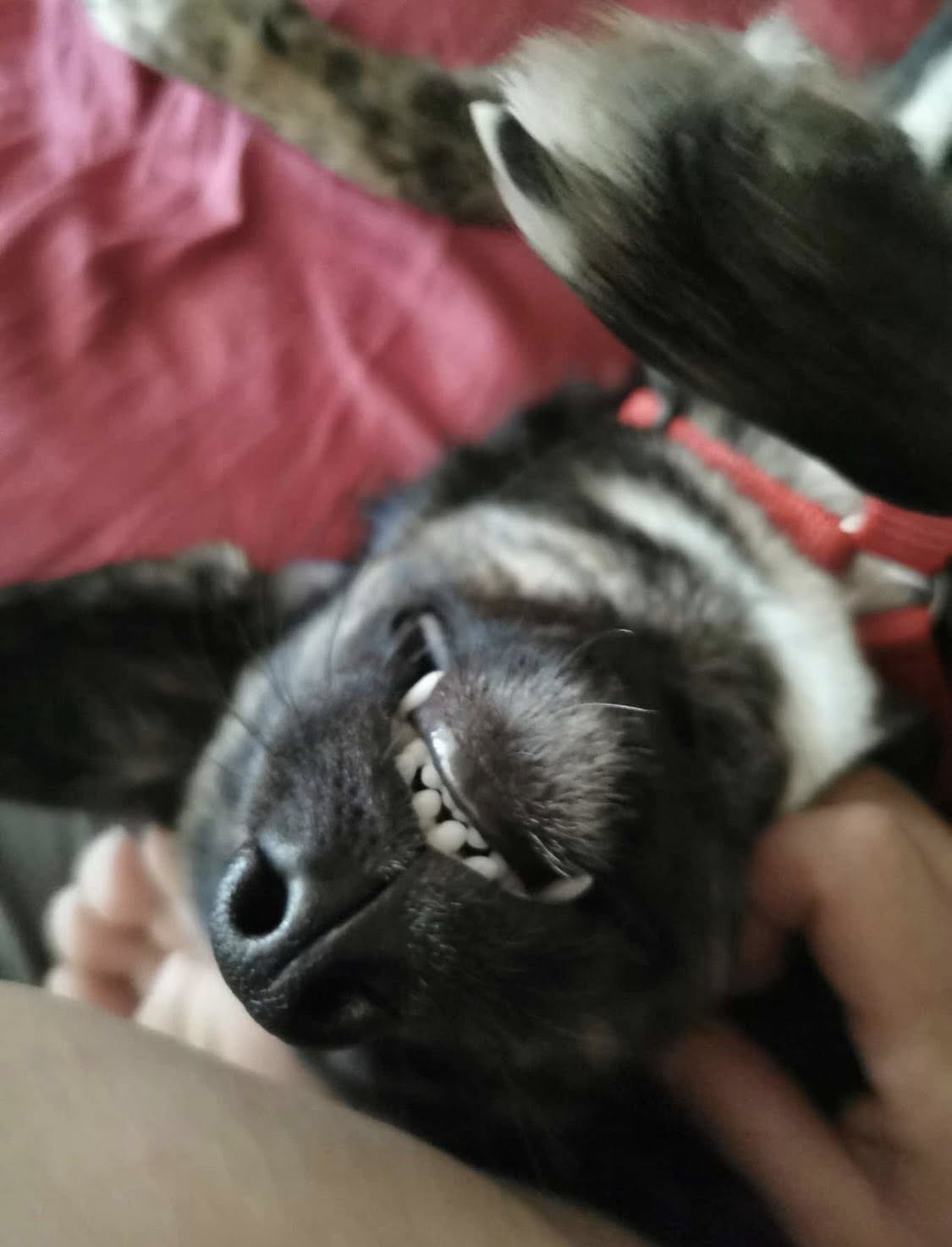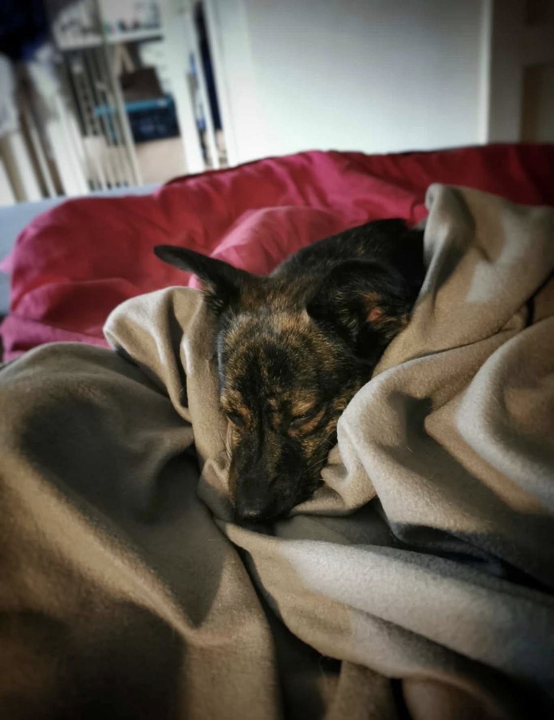 An das Leben im Haus hat sich Romy sehr schnell gewöhnt. Sie liegt gern neben ihrem Pflegefrauchen auf dem Sofa oder kuschelt sich in eins der Körbchen. Das Zur-Ruhe-Kommen fällt ihr manchmal noch etwas schwer, aber daran wird fleißig gearbeitet – sie macht stetige Fortschritte. Romy ist selbstverständlich stubenrein.