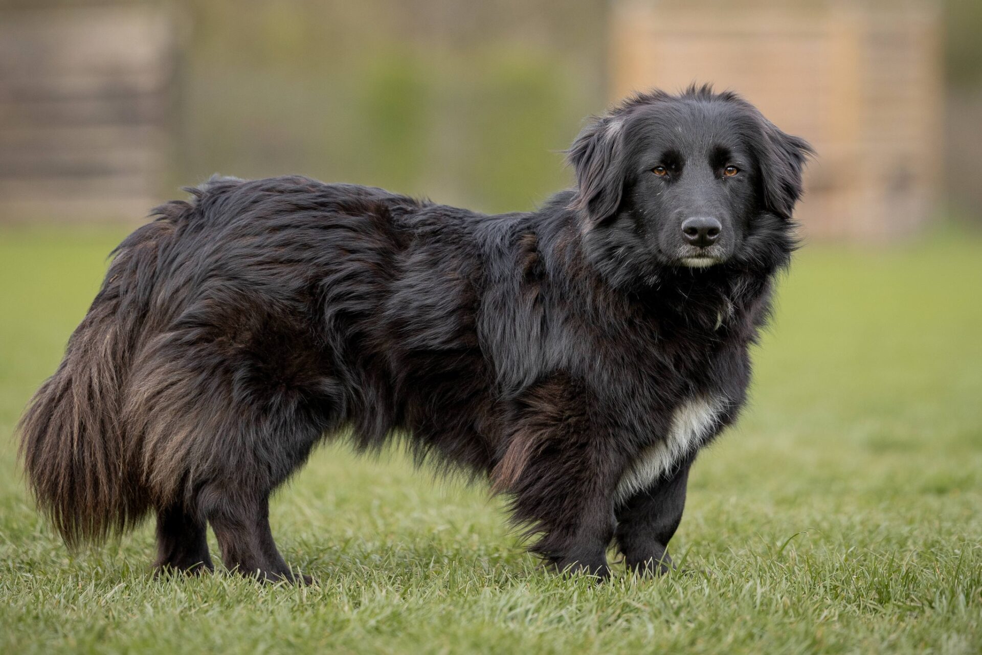 Bernie hat mit einer Schulterhöhe von circa 40cm und einem Gewicht von circa 19,5kg ein unverwechselbares Aussehen – Er hat den Körper eines großen Hundes, steht aber auf kurzen, kräftigen Beinchen.