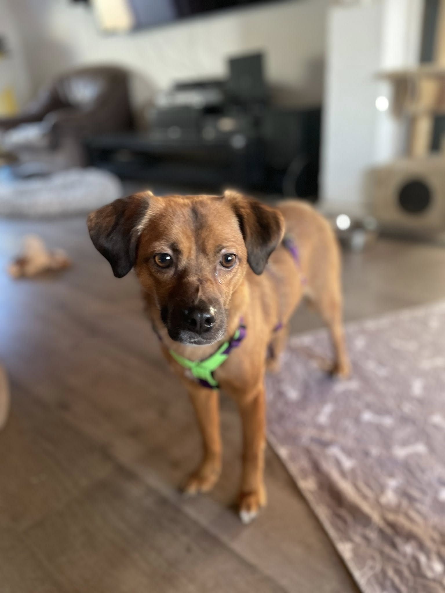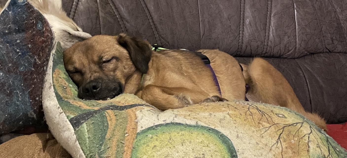 An das Leben im Haus hat sich Froggy sehr schnell gewöhnt. Er ist selbstverständlich stubenrein, liegt gern neben seinem Pflegefrauchen auf dem Sofa oder kuschelt sich mit seinen Hundekumpels in eines der Körbchen. Froggy ist ein entspannter Hund, der sehr gut zur Ruhe kommt und die Nähe seiner Menschen genießt.