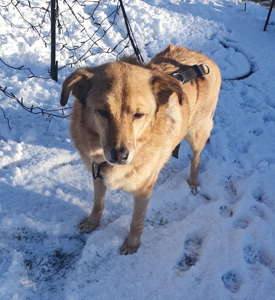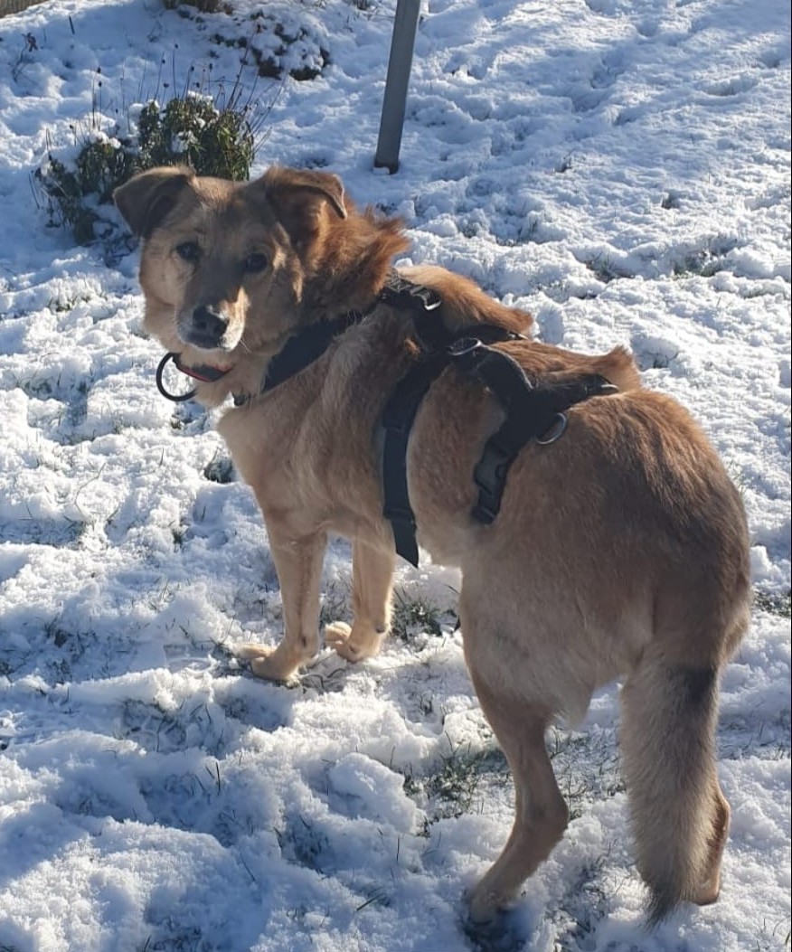 In das vorhandene Rudel hat er sich mühelos integriert und lässt sich auch von energiegeladenen jungen Hunden nicht aus der Ruhe bringen. Er liebt es sehr, Spazieren zu gehen.