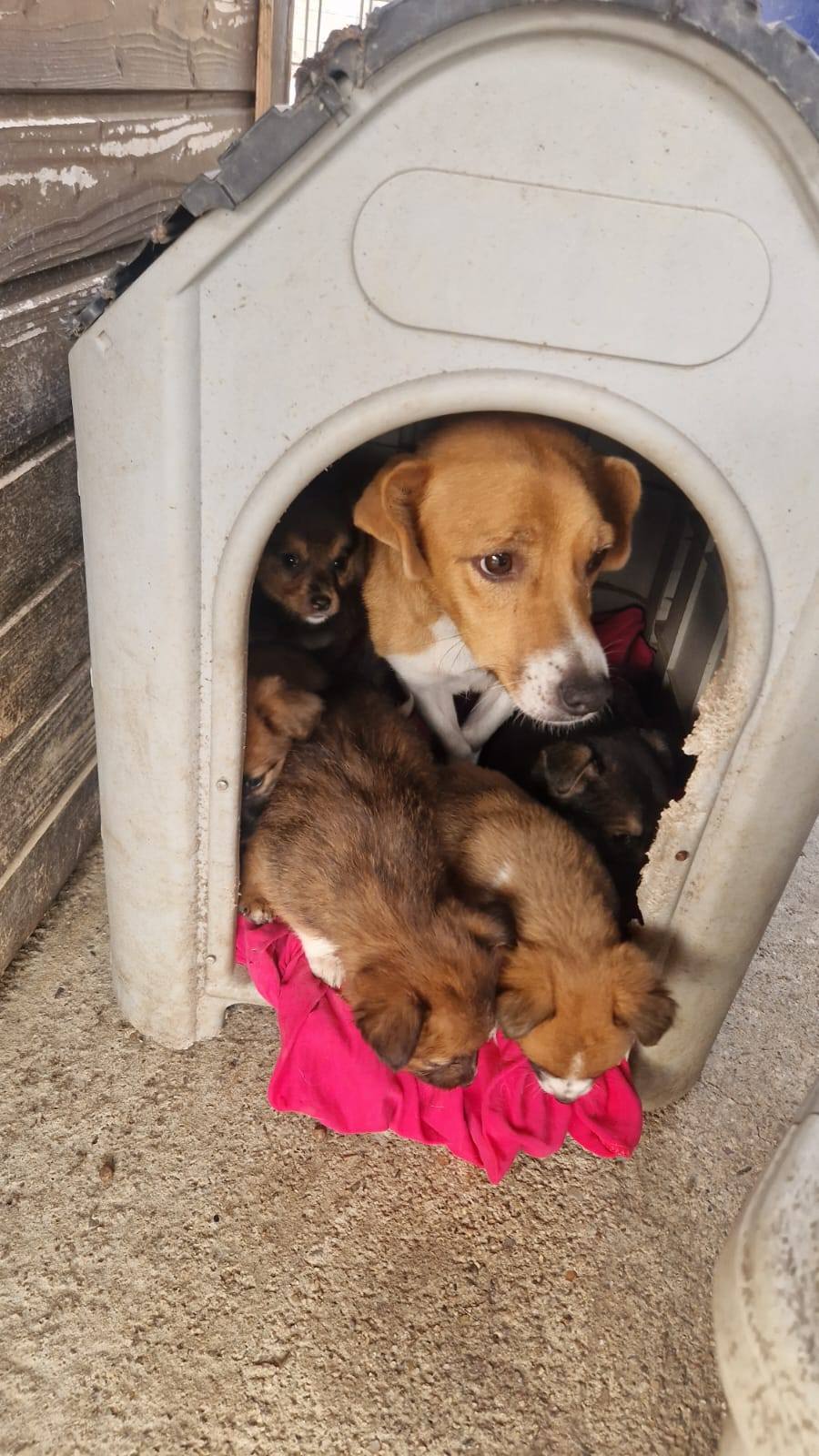 Im November wurde Nala zusammen mit ihren fünf Welpen gefunden. Unsere Tierschützerin brachte die gesamte Familie in ihr Tierheim, wo sie nun endlich in Sicherheit sind. Für Mama Nala bedeutete das, ihre Welpen ohne Sorgen großziehen zu können. Sie selbst war in keinem guten Zustand, viel zu dünn und total ausgemergelt. Mittlerweile geht es der ganzen Familie sehr gut, Nala darf aber noch weiter zunehmen.