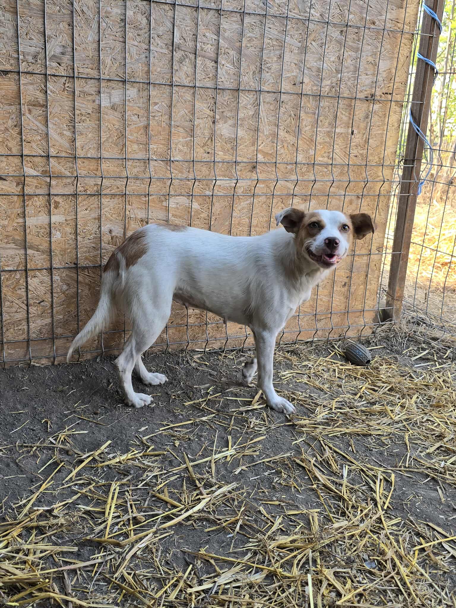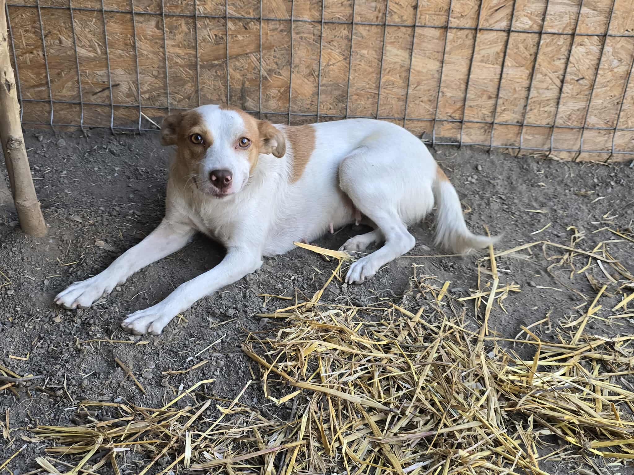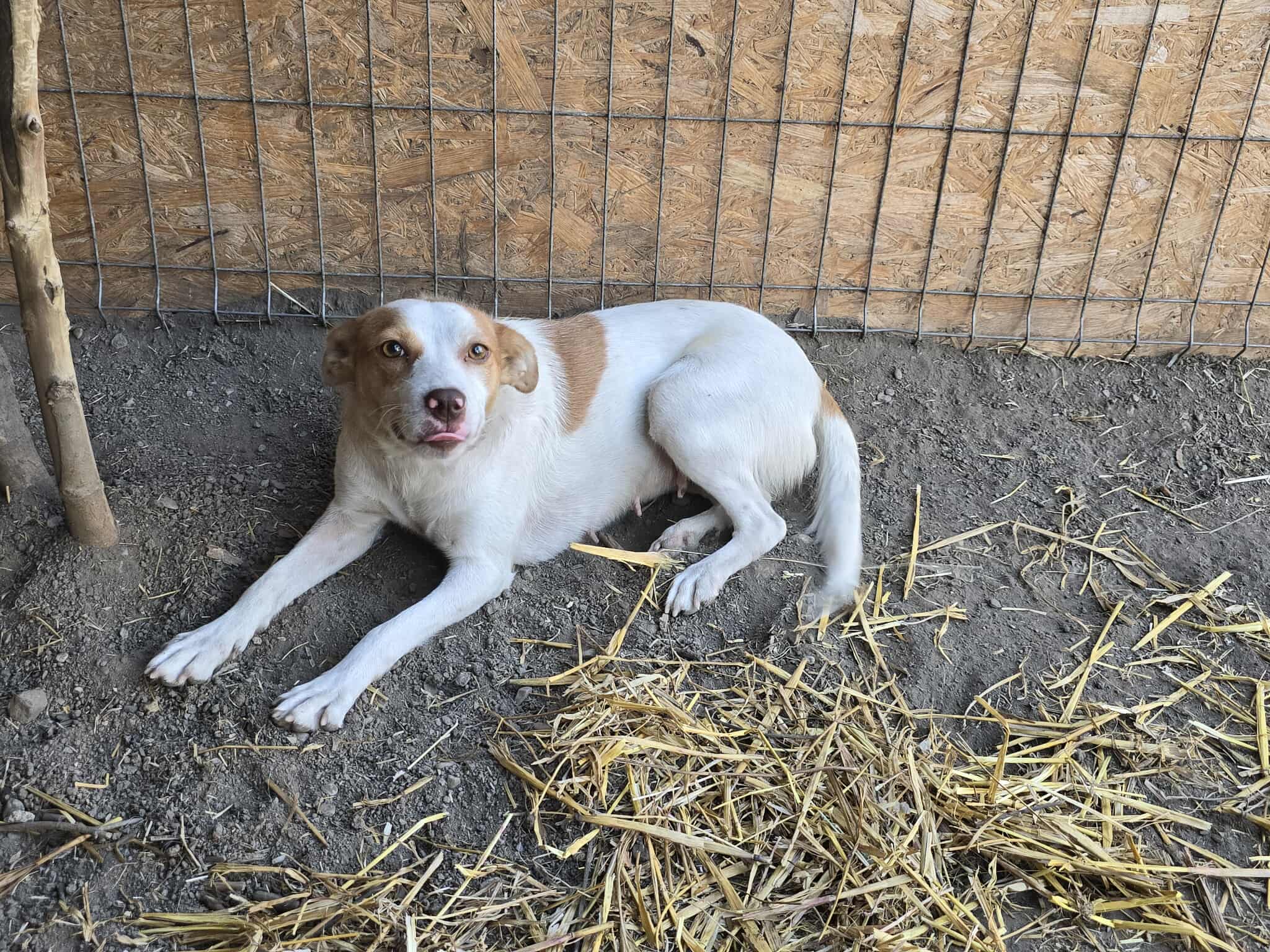 Aktuell lebt Orange mit der jungen Hündin White in einem Gehege zusammen (sie haben wir ebenfalls in der Vermittlung), das kann aber nicht das Leben für immer sein!