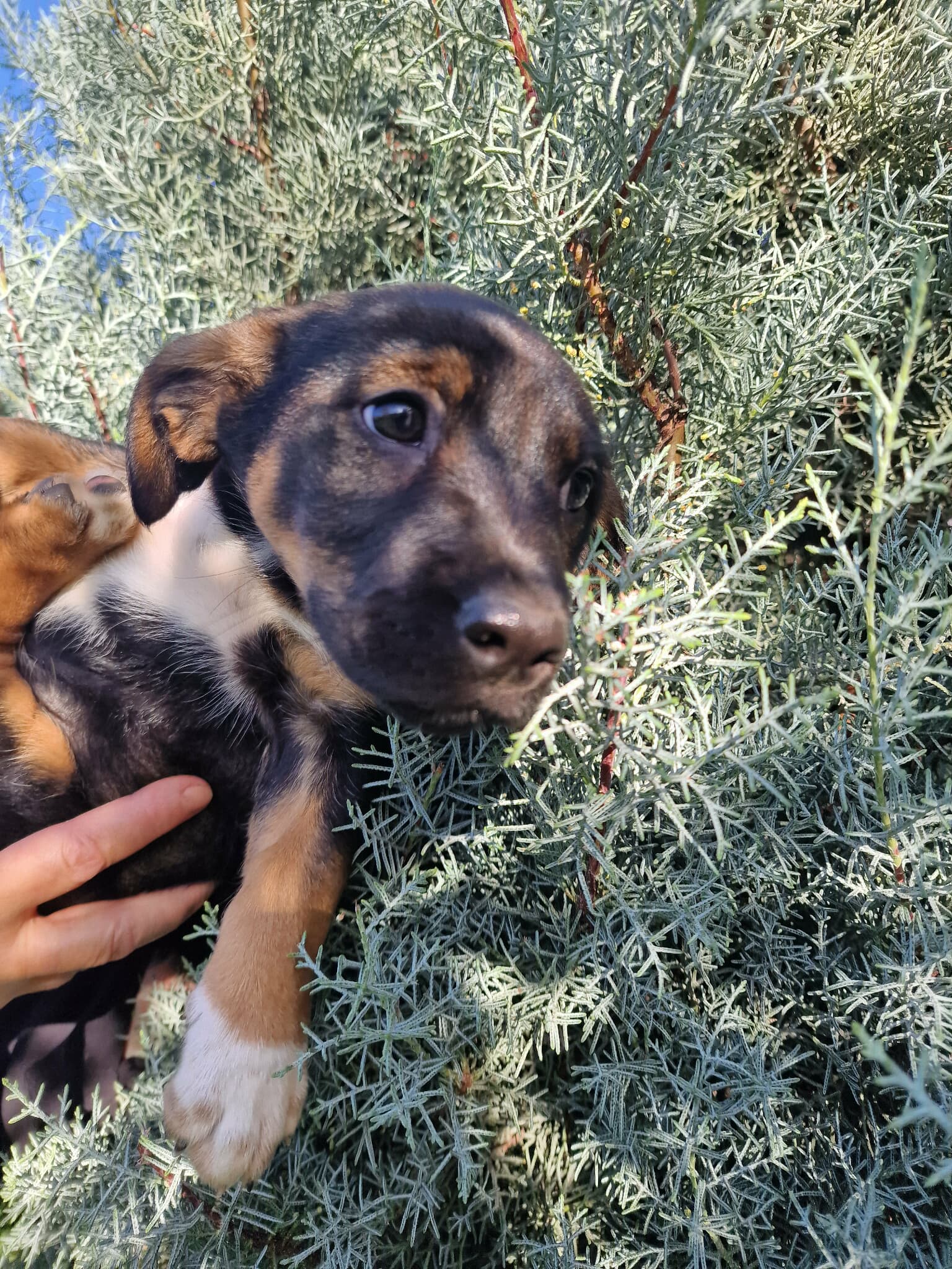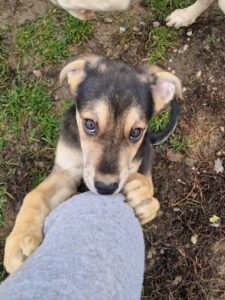 Auf dicken, tapsigen Pfötchen erkundet sie die Welt und kann unbeschwert und fröhlich mit ihren Geschwisterchen spielen. Dennoch müssen die Kleinen in einem Außengehege (mit Hütte) leben und dauerhaft ist das kein guter Platz für ein Hundekind. Daher suchen wir schon heute eine liebe Familie für den Kleine, die Mitte Januar 26 ausreisebereit ist.