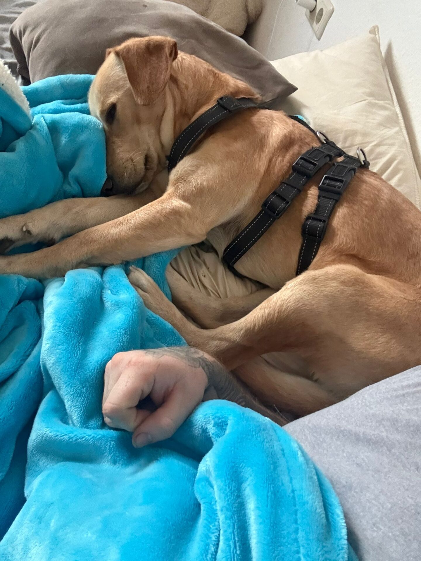In Rumänien wurde ich an einer kurzen Kette gefangen gehalten, nicht mal ein Häuschen hatte ich, um mich vor der Witterung schützen zu können… Trotzdem hab ich immer davon geträumt, mal eine eigene Familie zu haben und ein eigenes weiches Körbchen.